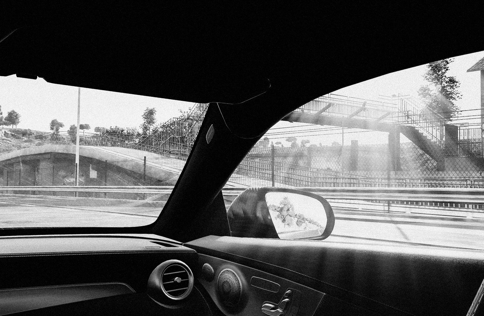 This project consists in images taken "from the backseat" of car, even if some of the cars doesn't even have backseats... As part of vrp, the goal here is to explore how racing games doesn't have to be about "racing" and some of the games used aren't even in the racing genre. This is a reference to "road tripping" photography. Catching that lonesome roadtrip mood, where the journey inside the car is more emotional rather than arriving at the destination.